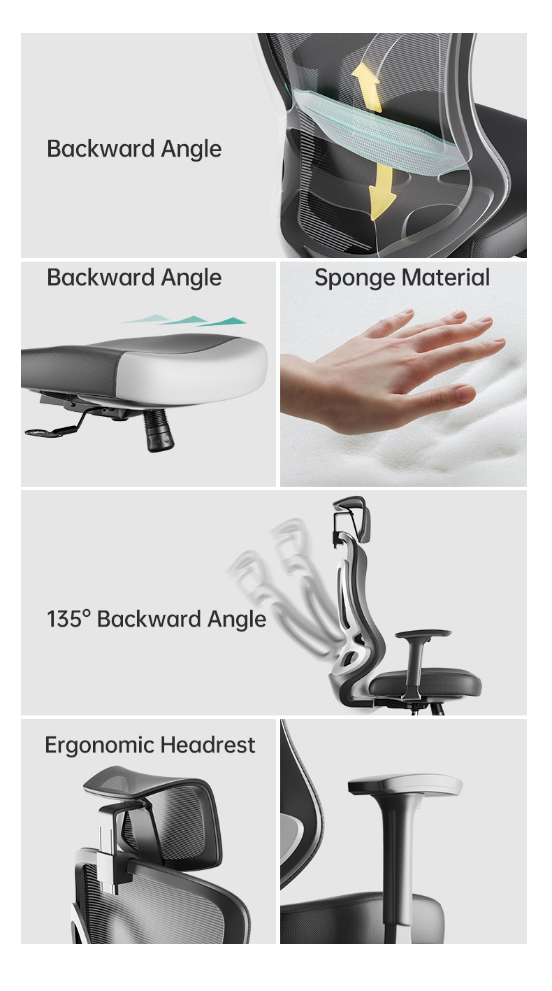 office chair with headrest, which provides four key points of support (head, back, hips, arms), suitable for 5'5" to 6'2" groups, if your height in this range, it is